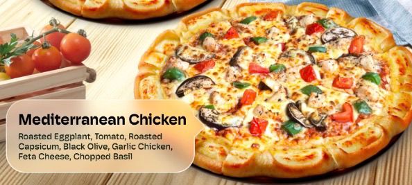 Roasted Eggplant, Tomato, Roasted Capsicum, Black Olive, Garlic Chicken, Feta Cheese, Chopped Basil